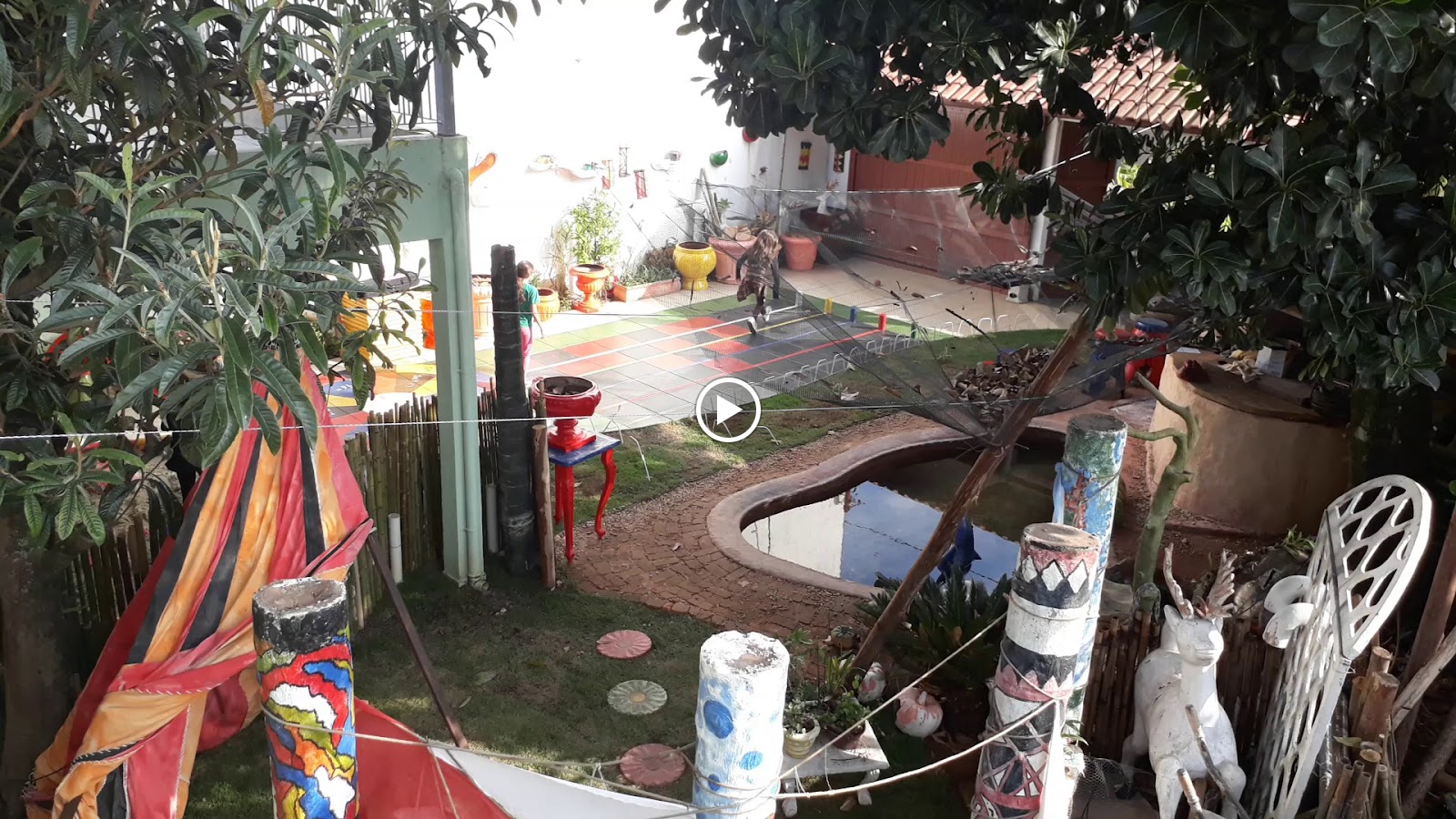 Aproveitamento de água das chuvas. Resfriamento do telhado e efeitos corredeiras. Retorno pela cascata. A chuva natural formando cascata e também; sistema elétrico de circulação. Iluminação Leds, contorno do lago e paisagismo natural em vasos cavados nas pedras cenográficos. Através de moto bomba a formação do efeito cacasta. Criação e produção ByFernando Scenes Garden. Na residência do Edson Lima Em Frederico Marcondes - presidente Prudente. SP.